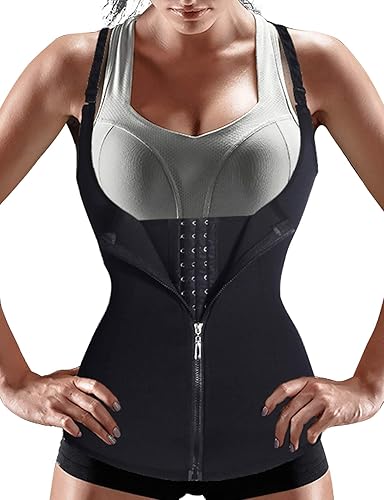 4. Nebility Women Waist Trainer Corset Zipper Vest Body Shaper Cincher Tank Top with Adjustable Straps (Best Waist Trainer for Tank Tops)